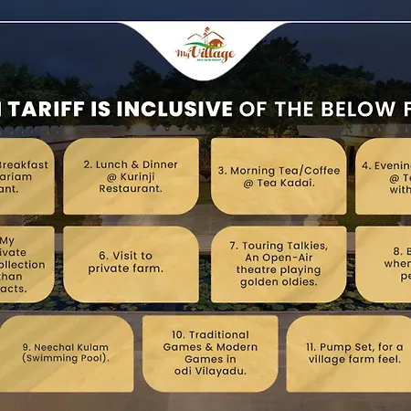 Located 40 km from Coimbatore International airport, My Village - Eco Rural Resort Coimbatore offers a 24-hour front desk and wake-up service, as well as bicycles for rent.